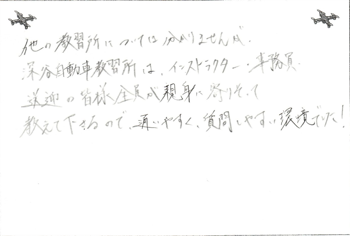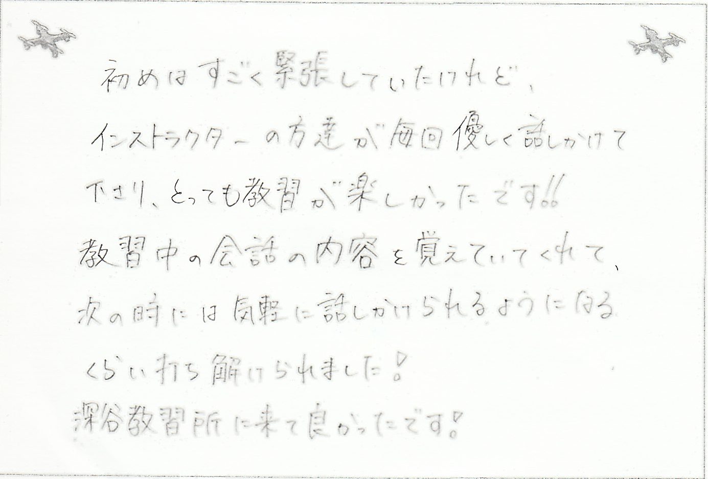 深谷教習を選んで本当によかったです。