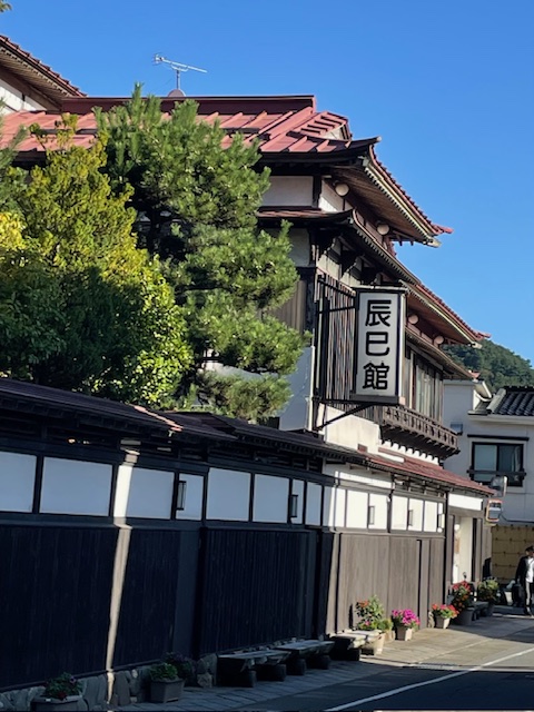 宿泊をした辰己館からの風景ですが、前方に見えるのが湯ノ島です。